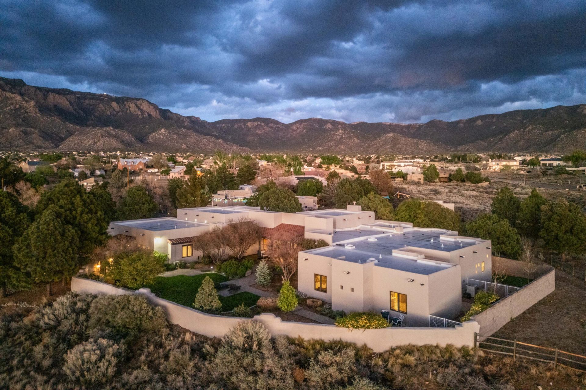 Experience elevated living in this beautifully updated single-story luxury home in North Albuquerque Acres. Designed for comfort and style, the open-concept kitchen features stunning Taj Mahal quartzite countertops, stainless appliances, a spacious walk-in pantry, and seamless flow into the inviting family room-perfect for everyday living and entertaining. The home showcases updated wood flooring throughout the main living areas, complemented by clean, contemporary finishes and striking beamed ceilings that add warmth and character. With 5 bedrooms plus a dedicated office, the flexible floor plan accommodates a variety of lifestyles. Three bedrooms offer private en-suite bathrooms, while two additional bedrooms share a convenient Jack and Jill bath.